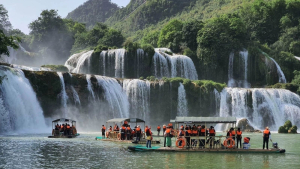 08h00: Quý khách lên xe khởi hành đi Thăm quan: Thác Bản Giốc - Một trong những dòng thác hùng vĩ nhất Việt Nam tại biên giới Việt – Trung, Thác Có độ cao 53m, chia làm 3 tầng được coi là thác đẹp nhất Việt Nam và là thác lớn nhất Đông Nam Á. Thác cũng là nơi giáp ranh với nước bạn Trung Quốc với cột mốc chủ quyền thiêng liêng của Tổ Quốc.