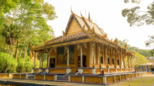 09h30: Đoàn tham quan Chùa Dơi - ngôi nhà của những bầy dơi đông đúc. Ngôi chùa là không gian văn hóa duy nhất thờ Phật Thích Ca của cộng đồng dân tộc Khmer Nam Bộ tại tỉnh Sóc Trăng. Ngôi chùa nổi bật trong không gian xanh mát của cây cối nhờ sắc màu vàng cam Khmer đặc trưng.