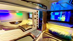 Xe giường Cabin VIP và Cabin đôi Bằng Phấn đi Hà Giang là loại xe giường VIP Cung Điện Di Động 22/24 Cabin. Đây là dòng xe cao cấp và tiện nghi nhất trên tuyến Hà Nội - Hà Giang hiện nay. Mỗi cabin trên xe được thiết kế như một phòng nghỉ tiện nghi với đầy đủ trang bị hiện đại: Hệ thống giường Massage điều chỉnh điện, màn hình LCD, máy nghe nhạc, hệ thống xem phim, tai nghe và cổng sạc USB tiện dụng. Ngoài ra, xe cũng có wifi, khăn lạnh và nước uống miễn phí cho hành khách.