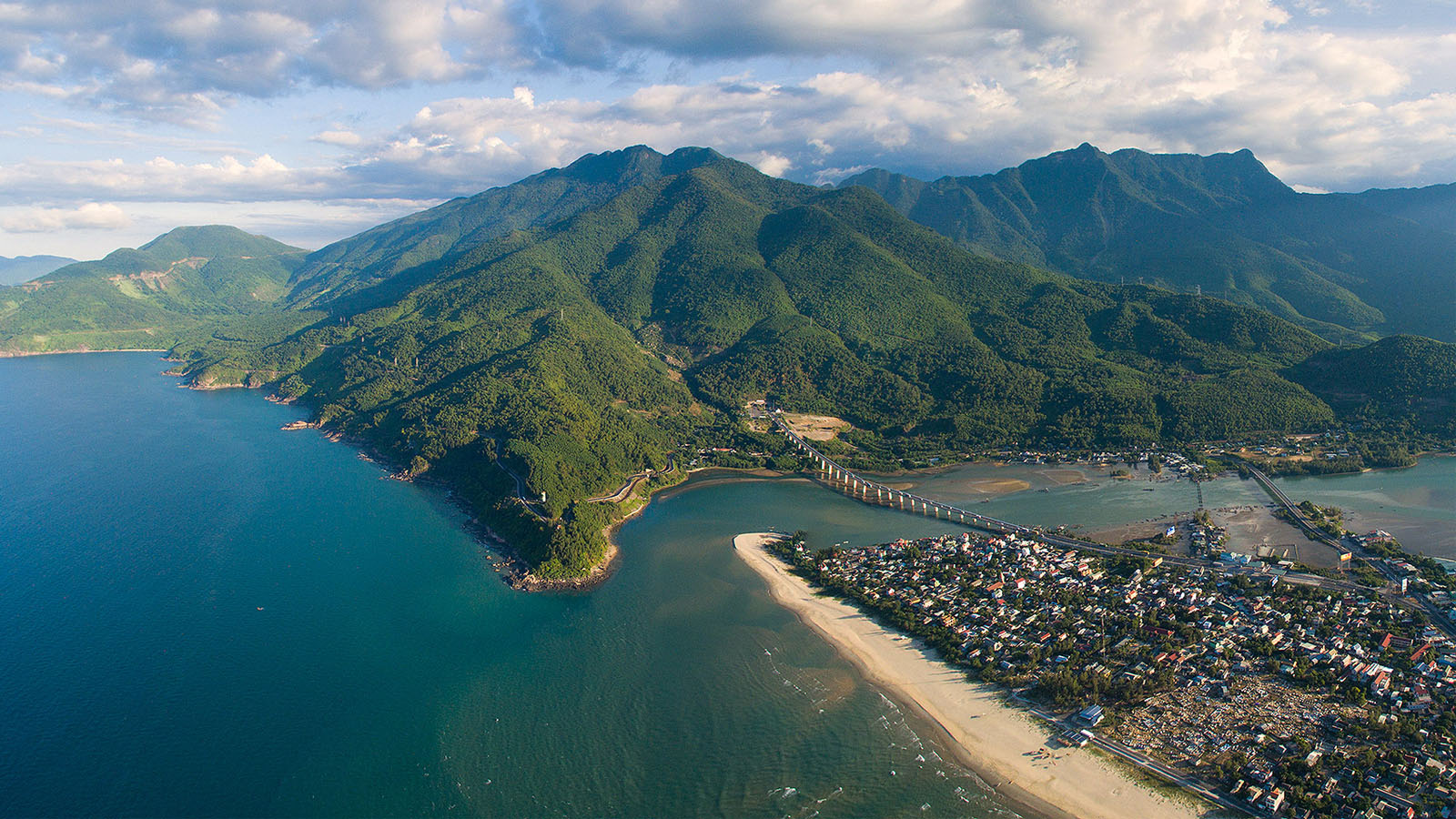 Ngắm vịnh Lăng Cô từ đèo Hải Vân Nếu muốn ngắm toàn cảnh vẻ đẹp vịnh Lăng Cô thì cách lý tưởng nhất đó là đứng từ vị trí đỉnh cao của đèo Hải Vân. Đây là con đèo nối liền Huế và Đà Nẵng, thu hút các phượt thủ bởi những cung đường uốn lượn giữa núi non hùng vĩ. Và sẽ càng hấp dẫn hơn khi tại đây bạn có thể phóng tầm mắt bao quát toàn vịnh hình trăng lưỡi liềm. Từng dãy núi Bạch Mã kỳ vĩ phủ đầy mây trắng, khu làng chài tọa lạc bên bãi biển màu xanh ngọc bích. Đôi khi bạn còn bắt gặp từng đoàn tàu chạy qua vịnh, uốn lượn ôm lấy éo biển,…