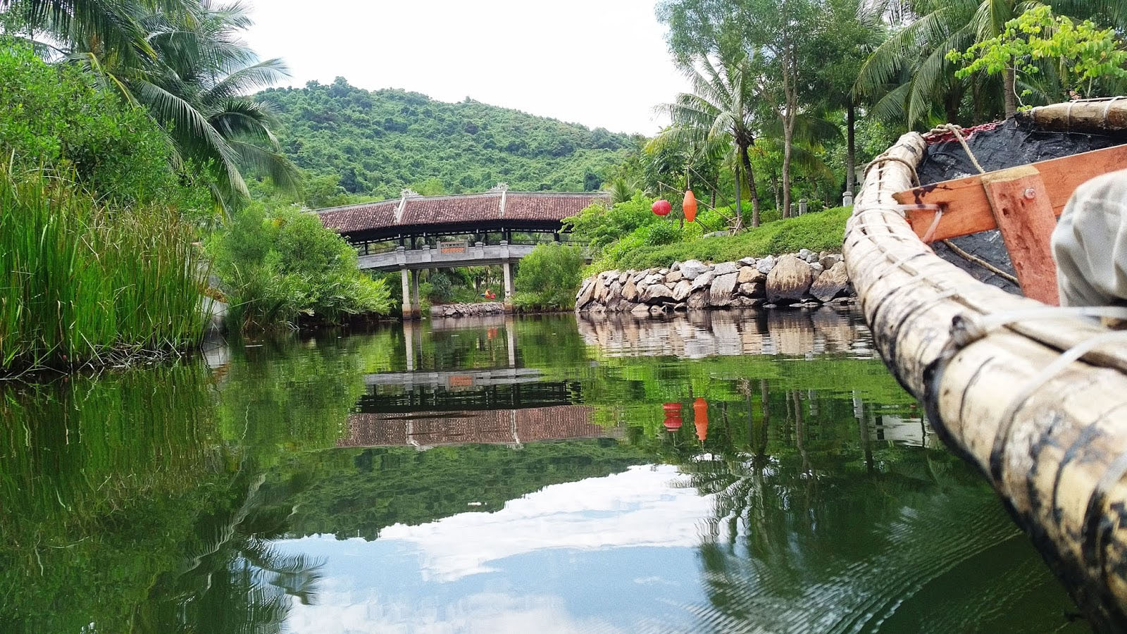 Con kênh trong khu phức hợp Laguna Lăng Cô kéo dài tận 3 km. Việc ngồi trên boong thuyền đi dọc kênh cũng là một trải nghiệm thú vị trong hành trình du lịch Huế lần này của bạn. Xuôi theo dòng nước, du khách sẽ được tham quan những nét ấn tượng của xứ Huế như: bức tường xám phủ đầy rêu phong, những chiếc đèn lồng đủ màu sắc, cây cầu ngói được xây dựng theo lối cổ điển,… Đặc biệt, vào các dịp lễ, tết du khách còn có cơ hội tham gia nhiều hoạt động như hát dân ca, thả hoa đăng