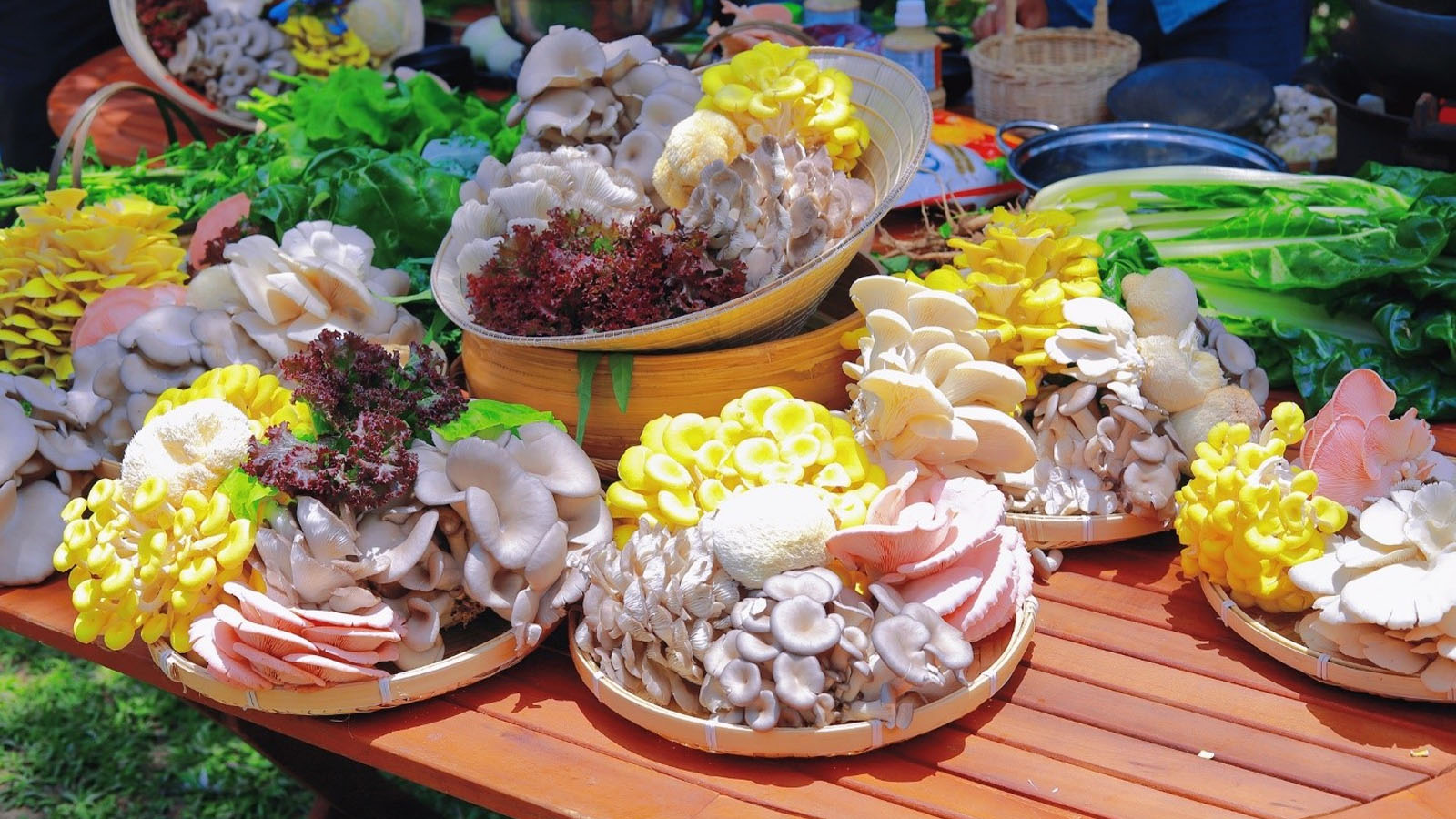 Không chỉ nghe giới thiệu về nấm mà mọi người còn được thử mùi vị của từng loại, tìm hiểu về quy trình sản xuất thực phẩm sạch và được hướng dẫn cách làm một số món ăn ngon từ nấm. Đặc biệt là du khách có thể đăng ký thưởng thức buffet nấm, súp nấm, chả giò nấm, xôi nấm, nấm xiên thịt nướng, lẩu bò nấm, tempura nấm…; uống trà nấm linh chi. Nấm ở đây được nuôi dưỡng bởi các nguồn dinh dưỡng tự nhiên nên chất lượng vượt trội hơn hẳn.