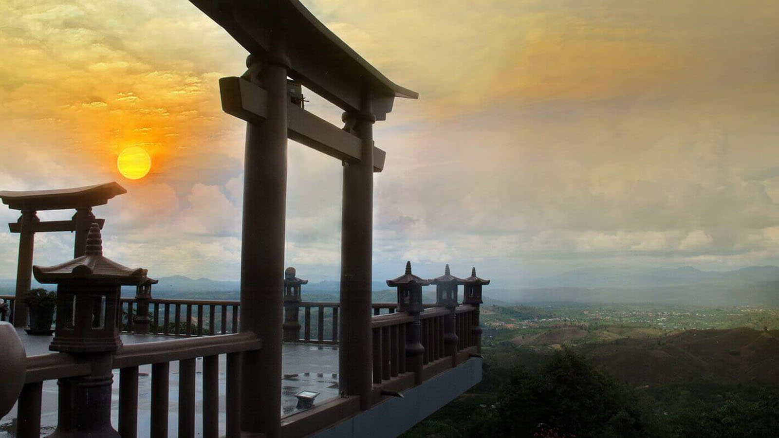 Cách thành phố Bảo Lộc khoảng 21km về phía Nam, chùa Linh Quy Pháp Ấn tọa lạc tại Đồi 45, Thôn 4, Lộc Thành, Bảo Lâm, Lâm Đồng – được mệnh danh là chốn bồng lai tiên cảnh với những cánh “cổng trời”, nơi bạn có thể phóng tầm mắt nhìn ngắm cả một khoảng không gian rộng lớn và hòa mình vào đất trời, núi non.