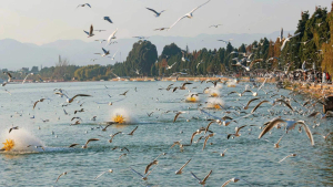 Sau bữa sáng đoàn đi tham quan Hồ Điền Trì – hồ nước ngọt lớn nhất tỉnh Vân Nam với chiều dài 39km, sâu 4,4m. Là một hồ rộng và được bao quanh bởi ngọn núi Tây Sơn xanh tươi. Từ tháng 11 đến tháng 3 năm sau, chim hải âu di cư về Côn Minh tránh rét, tạo nên một nét đặc sắc cho khung cảnh nơi đây. Tại đây quý khách có thể nhìn ngắm và cho Hải Âu ăn.