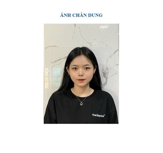 2. Ảnh chụp chân dung (Quý khách lưu ý: chụp bằng điện thoại, khi chụp đứng dựa vào tường trắng, không đeo kính, buộc tóc gọn gàng, lộ tai và trán, chụp trực diện mắt nhìn vào điện thoại).