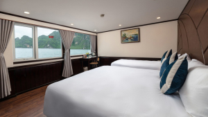 - Du thuyền ngủ vịnh, phòng nghỉ tiện nghi, điều hoà, khép kín, (2 người / phòng).