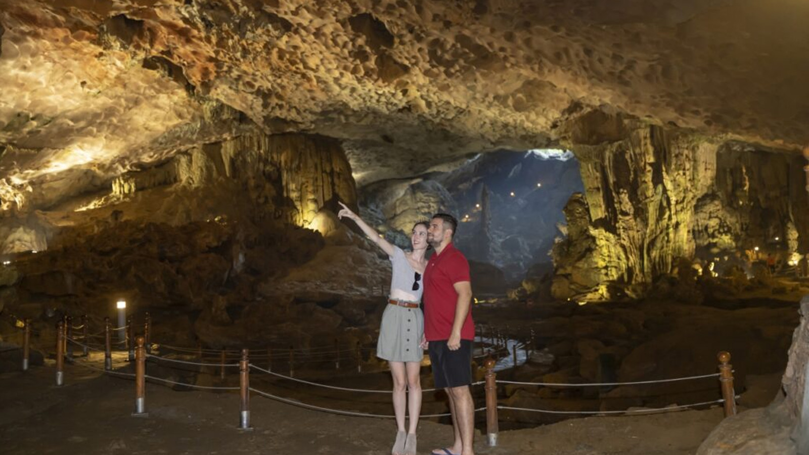 15h00: Tàu ghé thăm Động Sửng Sốt. Là hang động đẹp và lớn nhất Vịnh Hạ Long được người Pháp đặt tên "Grotte des surprises". Quý khách xuống tàu vào Động thăm quan 40 phút sau đó quay trở lại tàu.