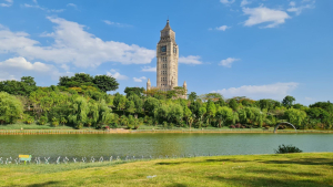 Và check-in tại Lầu Chư Tử - nằm trong khu Vườn Lựu Vạn Mẫu trấn Tân An, phía đông nam huyện Mông Tự, thủ phủ của Châu Hồng Hà. Tháp ngắm cảnh mới được xây dựng nhưng mang kiến trúc Trung Hoa cổ xưa.