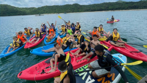 14h00 - 15h30: Quý khách được tự do trải nghiệm chèo sup, chèo thuyền kayak khám phá vẻ đẹp đảo Thanh lân. Hoặc cùng nhau tắm biển, bắt ốc trên bãi biển Vụng Tròn.